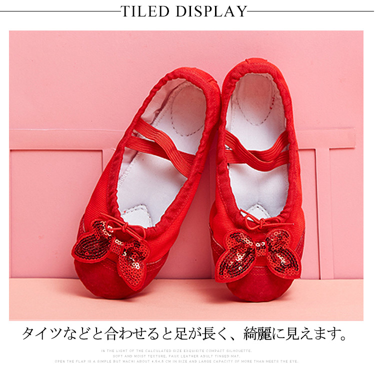 | 高品質バレエシューズが登場しましたタイツなどと合わせると足が長く、綺麗に見えます。柔らかくて足に馴染むから踊りやすい。バレエに限らずジャズダンスやエレクトーン、各種ダンスにもおすすめです! | |