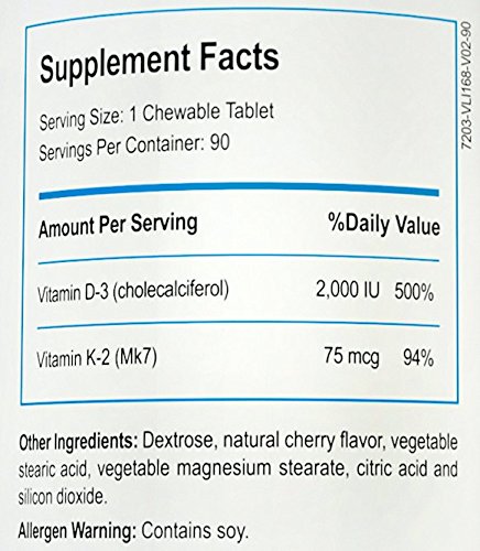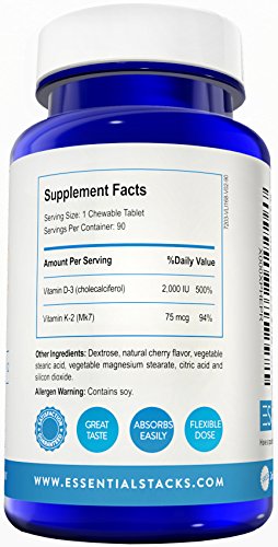 - 2 FANTASTIC INGREDIENTS IN 1 - every chewable tablet contains Vitamin D3 and K2 Mk7, which means you do not need to buy them separately, or try to work out how much to take of each.