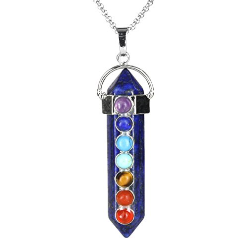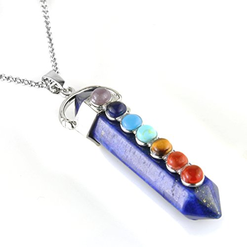 - Feature : Gemstone / Pendant Charm: Lapis Lazuli / Pendant Size: 52 x 16 x 14 mm / Stainless Steel Necklace Chain: 18 Inches(Length), 2.0mm (Width) / Quantity: 1 Piece of Necklace with Free Gift Box / Shape / Style: 7 Chakra Stone Hexagonal Prism Pile Healing Point Balancing Reiki Necklaces