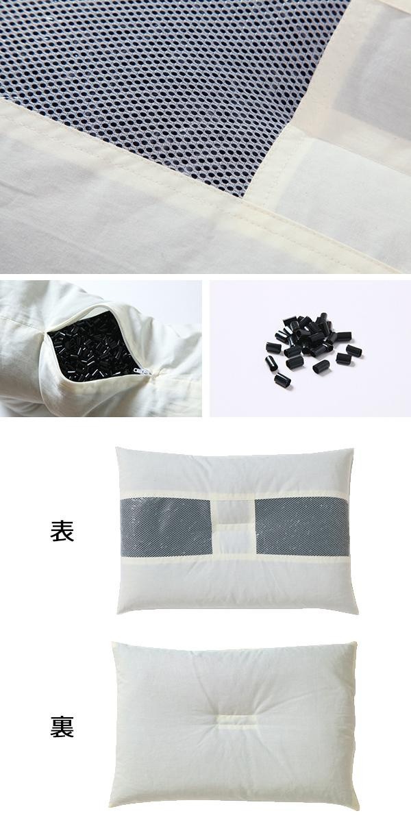 | 九州産の竹炭を練りこんだパイプを使用した枕です。 |