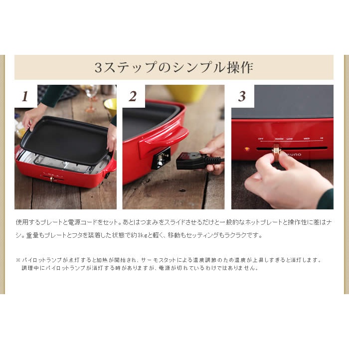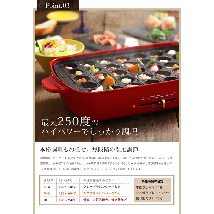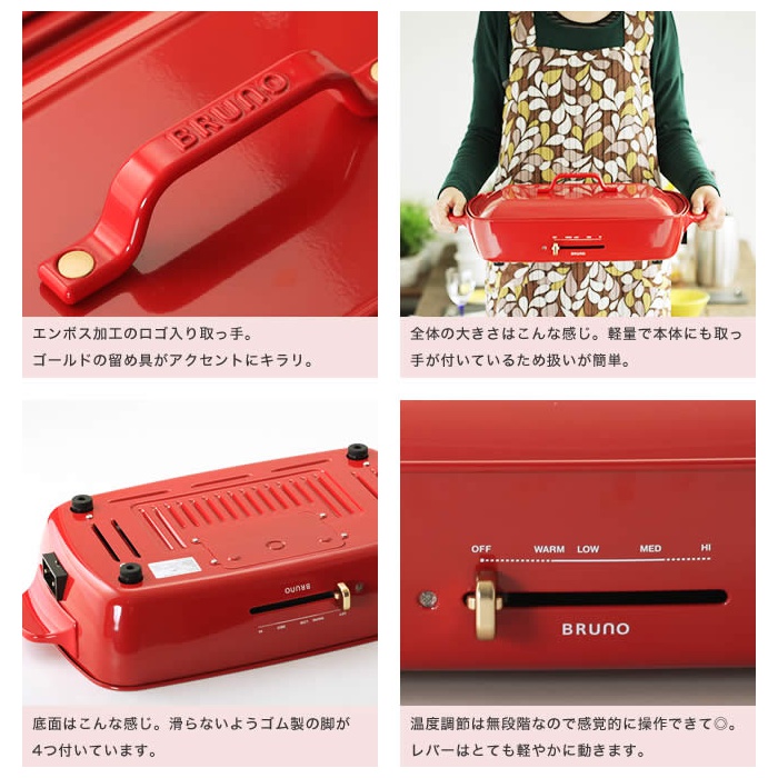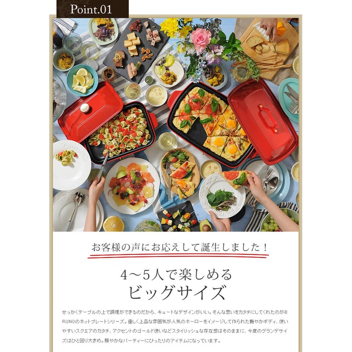 ■ BRUNO / 블루 노 핫 플레이트 그란데 사이즈 선명한 컬러링에 법랑조의 요염함 질투하 바디가 인기의「 BRUNO 콤팩트 핫 플레이트 」에,한층 커졌다『 핫 플레이트 그란데 사이즈 』 가 합류.이전에는 2~3명 용이었습니다만,그란데 사이즈는 4~5명에 즐길 수 있는 사이즈감.평상시 사용뿐만 아니라,친구 잠자리의 유충 부모님 등이 모이는 파티 씬에서도 대활약해 줄께요.물론 플레이트는,평면 플레이트와 타코야끼 플레이트의 2종류가 부속.플레이트는 착탈식&불소 가공 되고 있기 때문에 손질도 편안하게입니다.전채는 타코야끼 플레이트를 사용해 핀치《스》나 원 손가락 스타일,메인은 평면 플레이트에 고저스(gorgeous)에 라고 연출도 소적이겠지.새 주택 축하나 결혼 축하해 등의 선물로도 기뻐해지는 것 틀림없음입니다.