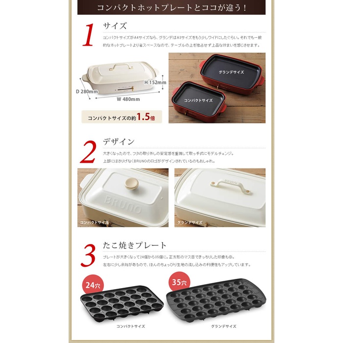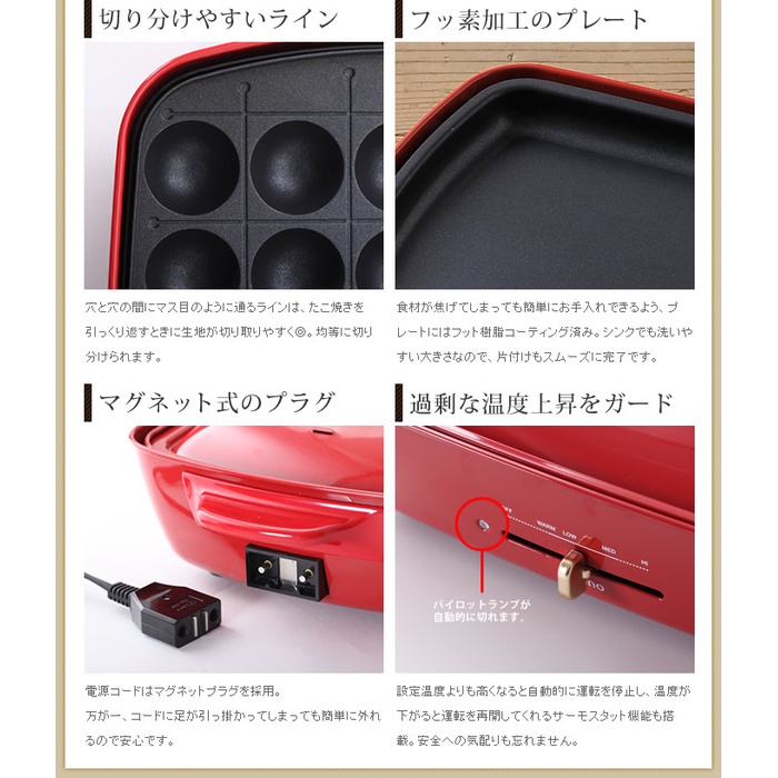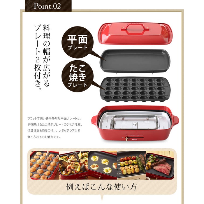 Roomy ◆4종부터 선택할 수 있는 특전과 레시피(요리처리법) 본 부착◆ bruno 블루 노 핫 플레이트 그란데 【포인트10배 무료 우송】 타코야끼 대형 BOE026 타코야끼기 탁상 그릴