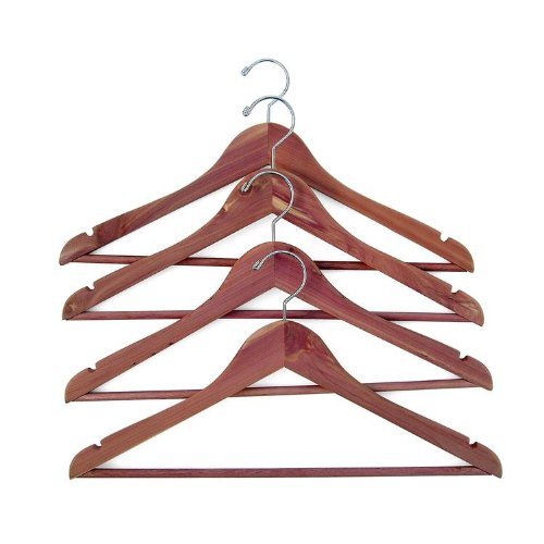 -. Feature : 17" x 3/4" Wide Fresh Cedar Wood Hangers / Repels Moths and Absorbs Moisture / Sturdy Slip Resistant Pant Bar / Sold in Packs of (12) Hangers