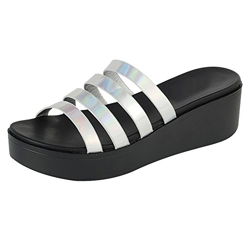 -. Title : Trends SNJ Women's Glitter Solid Platform Mid Heel Wedge Slide Sandal