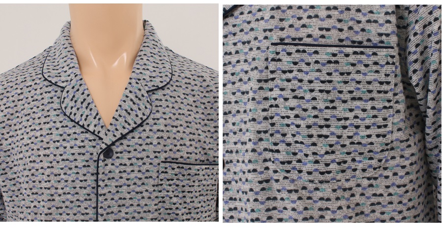 반달모양의 미니멀한 나염이 프린트된 니트 폴리 후기모 파자마 입니다.