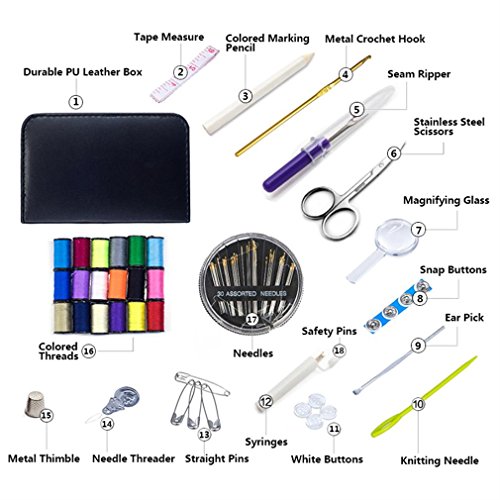 - ❤ DELUXE CRAFT & SEWING SUPPLIES - A perfect sewing kit for Every Project or Repairs, includes all the necessary tools you need when sewing, no need to buy parts separately, comes with Durable PU Leather Case.