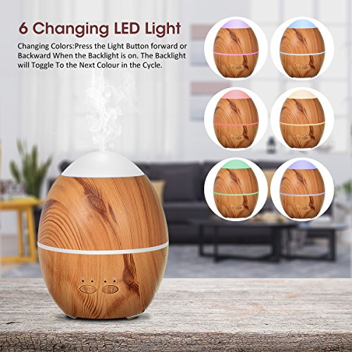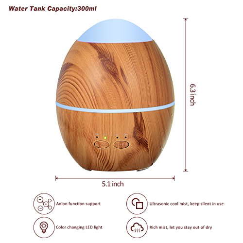 Simple to use. The upgraded Wood grain humidifier provides you continuous mist mode, which is easy to operate. With 300Ml water Tank, the diffuser supports about 5-6 hours mist time. It will turn off to Protect itself from Damage once the water runs out.