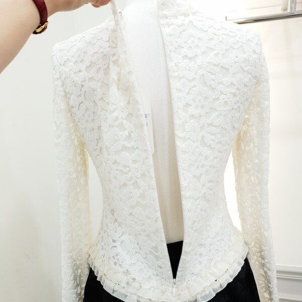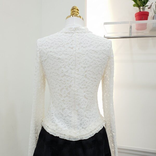 밑단에 프릴디테일을준 기모레이스 블라우스입니다~♡가슴?부분은 시스루~비침없이 안감처리되어있습니다~♡총장53cm