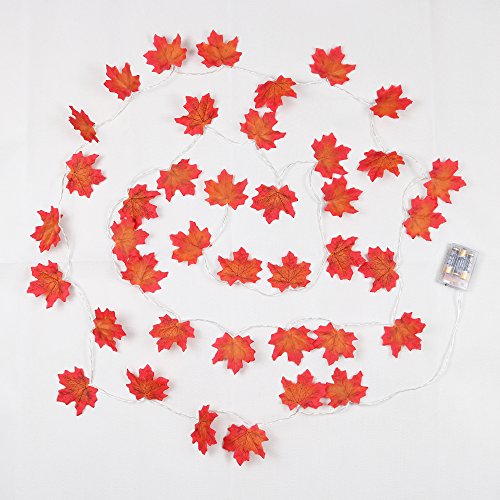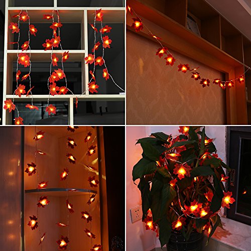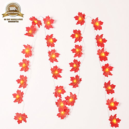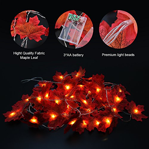 Autumn Fall Maple Leaves Light String Garland, Battery Powered Lighted 9.8ft with 30 Lights, Perfect Decoration for Autumn and Thanksgiving,Christmas,Birthday,Parties DIY (Warm white) (30 Lights)