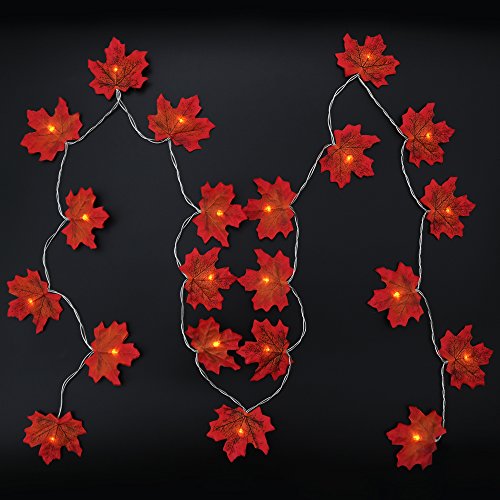 - A BEAUTIFUL GARLAND OF LIT-UP FALL LEAVES. In this string of lights, the LEDs are intermixed with realistic imitation maple leaves in their gorgeous autumn colors.