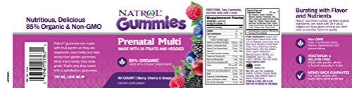 Natrol Pre-Natal Multi Gummies are 85% organic, made with organic sweeteners, non-GMO and are free of artificial flavors, sweeteners, colors and preservatives. Because they are pectin-based, they are vegetarian and less likely to stick to your teeth and to the bottle than standard gelatin gummies. Every bottle of Natrol Women’s Multi Gummies comes in three great-tasting flavors: mixed berry, cherry and grape.