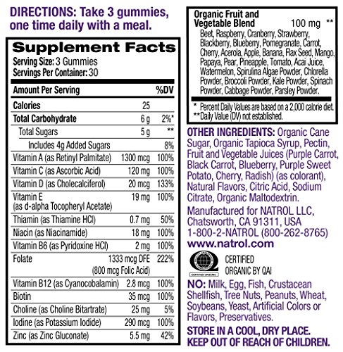 Expectant mothers will love the flavor, texture, and nourishing benefits of Natrol Prenatal Multi Gummies.* Packed with the nutrients and vitamins you and baby need from 26 organic fruits and vegetables, our daily multivitamin gummy provides the plant-based nutrients and essential vitamins that you expect from the highest quality multivitamins.*