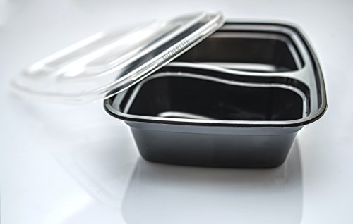 Easy Care, Easy Use: You can easily warm up or cool down your food as Kitchenette® 2 compartment disposable black food containers are microwave and freezer safe. The special design of top and bottom makes these containers stackable to fit easily in your refrigerator and after usage just put it in the top rack of your dishwasher. Don't worry, it's safe.