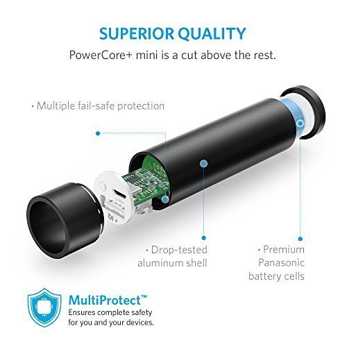 Anker PowerCore+ mini 3350mAh Lipstick-Sized Portable Charger (3rd Generation, Premium Aluminum Power Bank) One of the Most Compact External Batteries, Uses Panasonic Cells