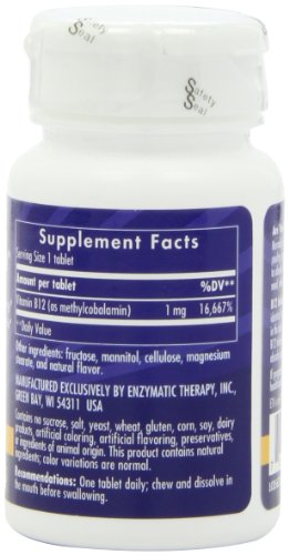 -. Feature : Vitamin B12 plays a critical role in the process of energy production / Crucial to homocysteine metabolism and nervous system function / Chewable tablet / Contains no sucrose, salt, yeast, wheat, gluten, corn, soy, dairy products, artificial coloring, artificial flavoring, preservatives or ingredients of animal origin