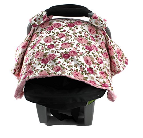Onyx Arrow Carseat Canopy, Pastel Roses Cotton Print Light Pink Minky Dot, Mix and Match