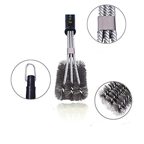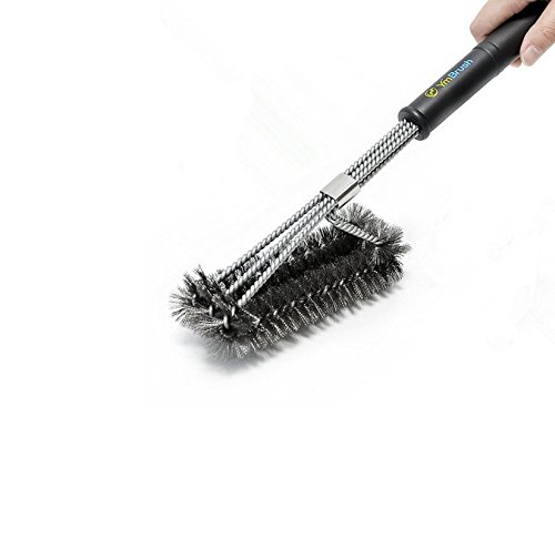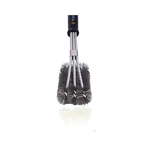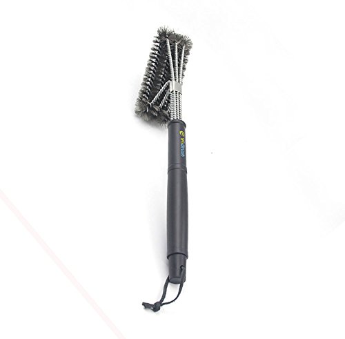 BBQ Grill Brush 3in1. Barbecue Cleaning Brush with Wire Bristles are Made of Stainless Steel. (Stainless Steel, 18 inch)