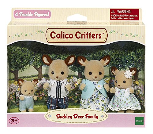 -. Binding : Toy -. Brand : Calico Critters -. Department : baby-girls -. EAN : 5711008995933 -. Feature : Fun and educational / Performance and quality tested / Great fun for children of all ages / Calico Critters are poseable, with jointed arms and legs, and heads that turn / All Critters come with high quality clothing, that is removable / Collect them all -. IsAdultProduct : 0 -. IsAutographed : 0 -. IsMemorabilia : 0 -. ItemPartNumber : CC1457 -. Label : International Playthings -. Manufacturer : International Playthings -. Model : CC1457 -. MPN : CC1457 -. PackageQuantity : 1 -. PartNumber : CC1457 -. ProductGroup : Toy -. ProductTypeName : TOYS_AND_GAMES -. Publisher : International Playthings -. ReleaseDate : 2013-07-28 -. Studio : International Playthings -. Title : Calico Critters Buckley Deer Family -. UPC : 885293187511 -. Warranty : No Warranty