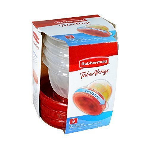 Rubbermaid TakeAlongs Twist and Seal Food Storage Containers, Set of 3, 2-cup, Chili (FG7J0000TCHIL). Twist-tight, leak-proof seal makes these containers ideal for storing liquids and snacks, or taking items on the go. Cereal-bowl design is easier to eat from. The handles stay cool when food is hot. Microwave and freezer safe. Dishwasher-safe (in top rack only). Made in the USA for nearly 80 years, Rubbermaid has represented innovative, high-quality products that help simplify life. Recognized as a “Brand of the Century” for its impact on the American way of life.