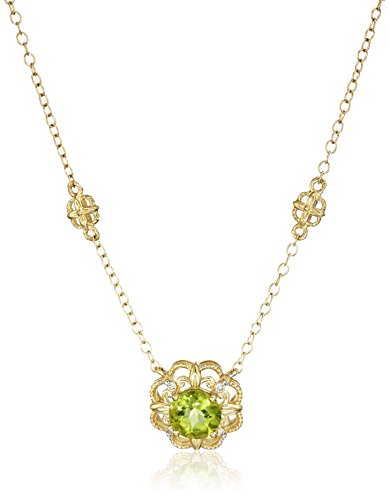 -. Title : 14k Yellow Gold Peridot with Diamond Accent Milgrain with Stations on Necklace, 17"
