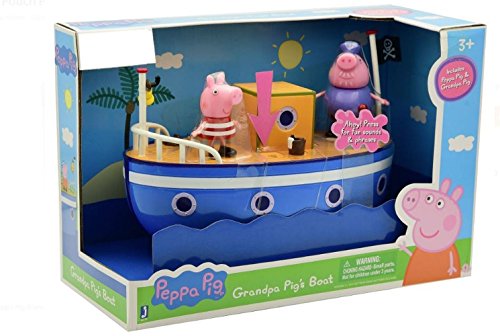 -. Feature : Exclusive Peppa Pig Grandpa Boat with Pouch Pig / Grandpa boat push toy is all about "ahoy" press the button for fun sounds and phrases / Approximately 10"x6"x6" / Includes boat, grandpa and peppa pig