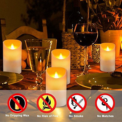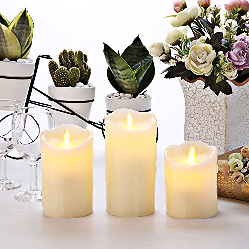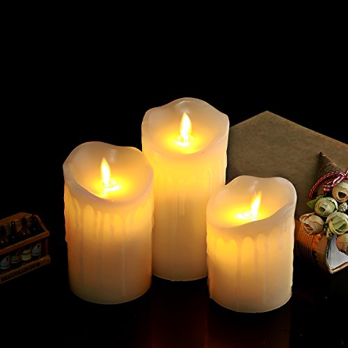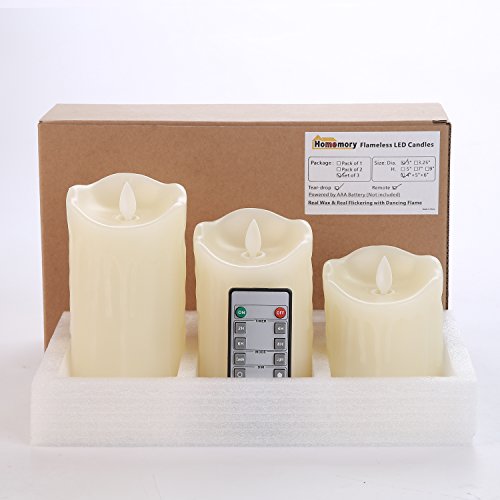 -. Title : Homemory 4" 5" 6" Flameless LED Real Wax Candles, Ivory, Dancing Flame, Set of 3 Battery Operated Electric Faux Candle for Church, Retreat, Votive