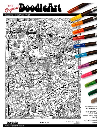-. Feature : Detailed Dinosaur themed poster to color / All posters are P.R.Inted on 10% recycled, FSI certified, 100 weight poster paper / Includes 12 dual-tip, chisel and fine point non-toxic washable markers, with perforated end caps to reduce the risk of choking / Poster size: 24" x 34" / From the Original DoodleArt Collection / adult coloring kit