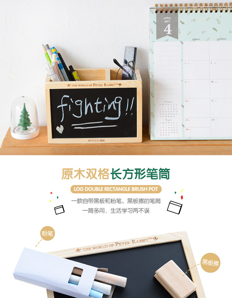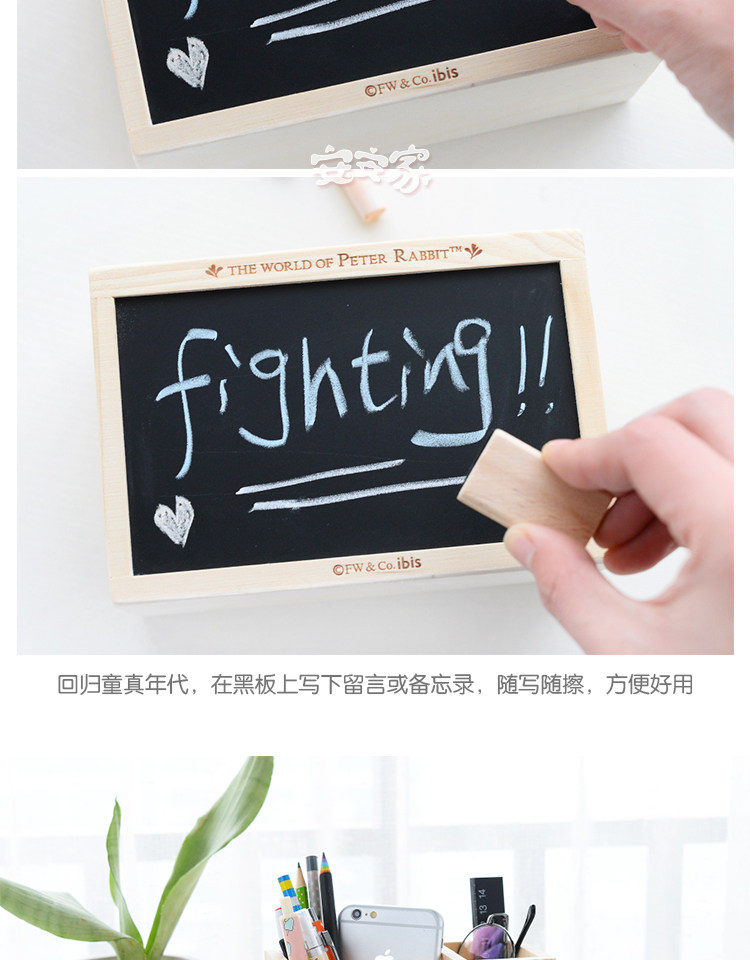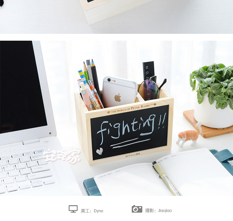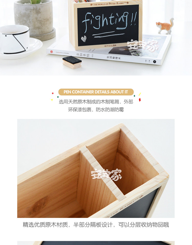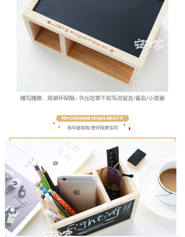 韩国创意时尚原木质小清新双格笔筒 小黑板多功能学生桌面收纳盒