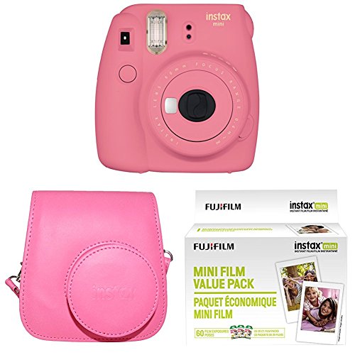 Fujifilm Instax Mini 9 Instant Camera with Instax Groovy Camera Case (Flamingo Pink) & Instax Mini Instant Film Value Pack