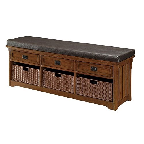 -. Brand : Coaster Home Furnishings -. Feature : Choose from available sizes / Dark brown faux leather seat cushion / Wood construction in brown finish / 3 drawers, 3 cubbies, 3 baskets / Dark metal pulls with backplates -. Label : Coaster Co of America -. Manufacturer : Coaster Co of America -. MPN : 501060 -. PackageQuantity : 1 -. PartNumber : 501060 -. ProductGroup : Furniture -. ProductTypeName : HOME_FURNITURE_AND_DECOR -. Publisher : Coaster Co of America -. Studio : Coaster Co of America -. Title : Coaster Furniture Calexico Storage Bench