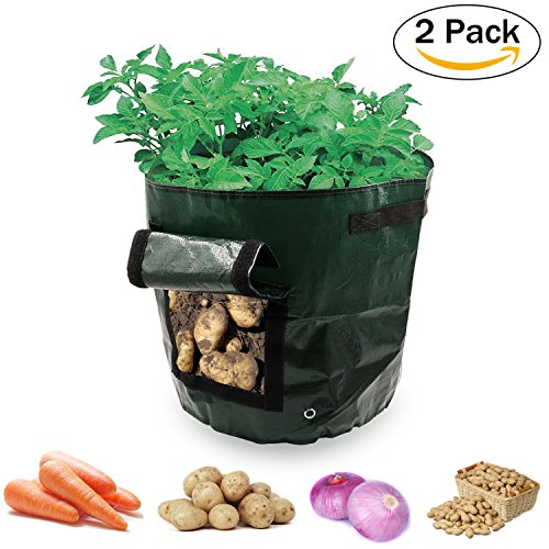 Grow Bags,2PCS Garden Vegetables Grow Bag Potato Planter Gardeners Grow Bags - Potato Planter with Access Flap for Harvesting 14" x 20"
