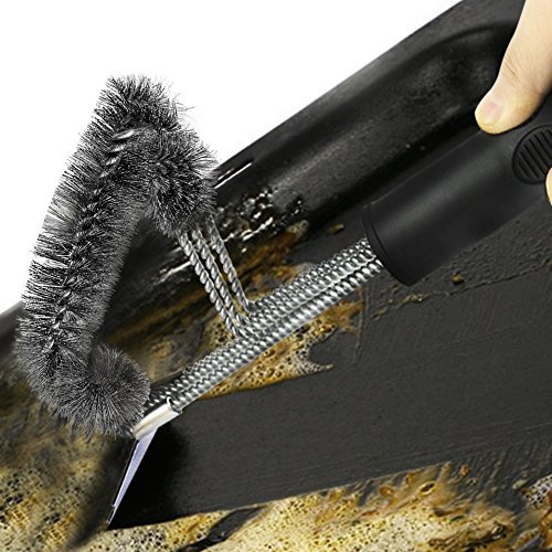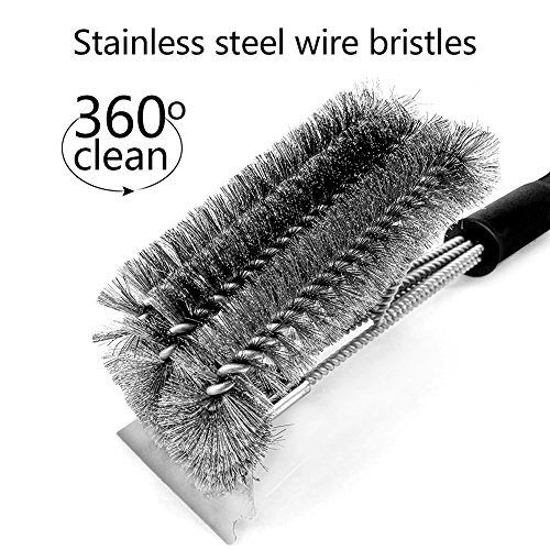 - UPGRADE BBQ BRUSH FOR GRILL: New grill brush exceed ALL your expectations!Made with stainless steel twisted wire and Scraper to maximize its cleaning efficiency.Attached silicone oil brush as a bonus.