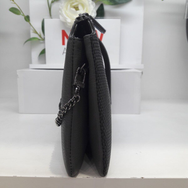 심플한디자인에 한면은 패턴이들어간 고급스러운 소재이고다른쪽은 부드러운엠보가죽소재를사용하여 다른 분위기를 연출할수있다 로고와 숄더체인끈으로포인트를 주었고 정장,캐주얼 모두 매치하기좋다세군데의 수납공간이있어크기에비해 수납량이 많다