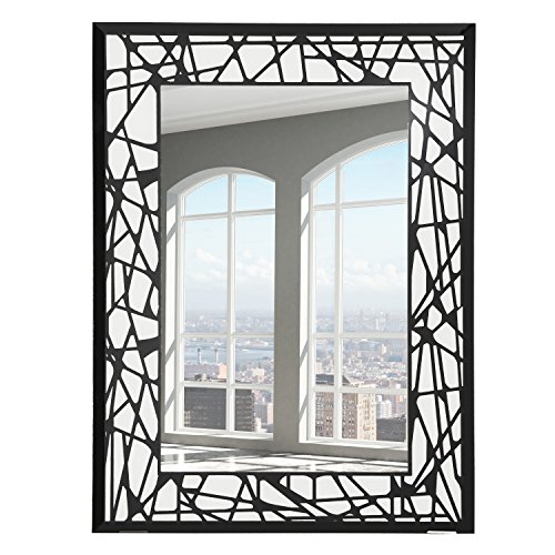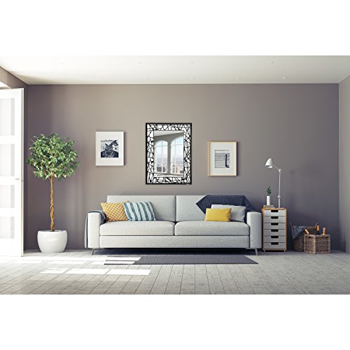 Breeze Point 30" x 40" Rectangular Beveled Large Wall Mirror - Frameless Decorative Mirror with Black and White Abstract Shapes Pattern Border, Black/White (M00143)