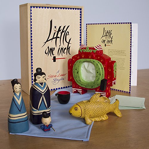 Steve Light Storybox: Little One Inch. Discover a new approach to developing early language skills and storytelling: Steve Light Storyboxes! Little One Inch is the Japanese folktale of a small boy's determination to overcome the expectations of others and defeat the dreaded Oni monster. The storybox contains stylized characters and props, as well as a booklet that retells the tale of Little One Inch in Steve's own words. Be true to the classic tale or add your own twist; the Little One Inch storybox will encourage confidence, curiosity, and creativity in young storytellers. Hand-painted, resin characters include: Little One Inch, the Princess, the Prince, the Big Fish, the Oni Monster, and more! For ages 4-7. Dimensions: 11.5" L x 8.25" W x 3" H Weight: 2 lbs.