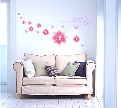 -. Title : ufengke® "Happiness in Bloom" Beautiful Hibiscus Flowers DIY Wall Decals, Living Room Bedroom Removable Wall Stickers Murals