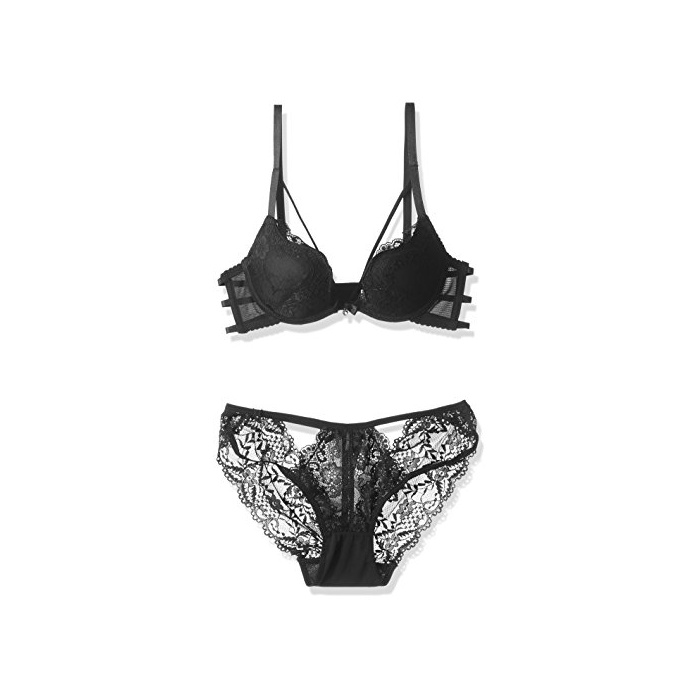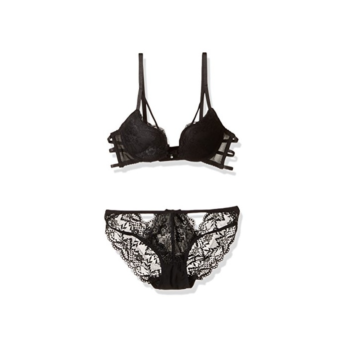 (R-Dream) 섹시 백 스트링 레이스 골짜기매 하 와이어 브래지어 & 쇼츠 세트 디자인 란제리 (블랙 70AB)