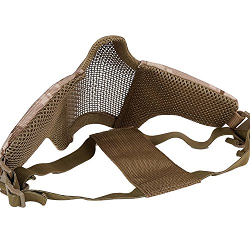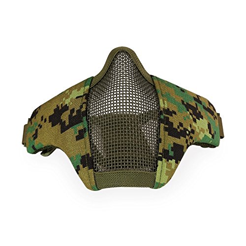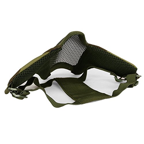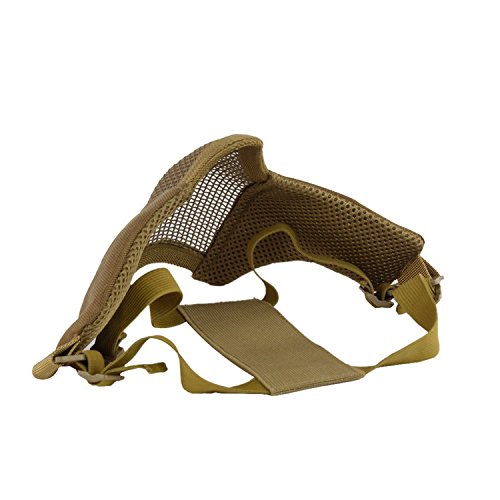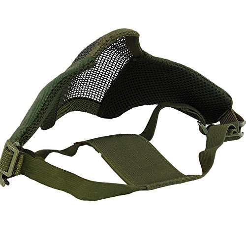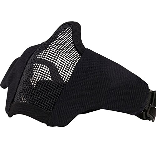-. Feature : We ship from Hong Kong or China, 100% Brand New, For Airsoft Only! / Half face mask protector, tactical stylish looking,Easy to wear helmet, earphone. Perfect for war game, paintball, hunting and military purpose / Featuring 2x elasticated straps, as well as an additional fabric back-strap between the two adjustable straps to ensure mask doen't slip / Material: Nylon & Metal, Approximate Size: 20 x 14.5 cm / One size fit all, Compatible with most eyes protection glasses / goggles