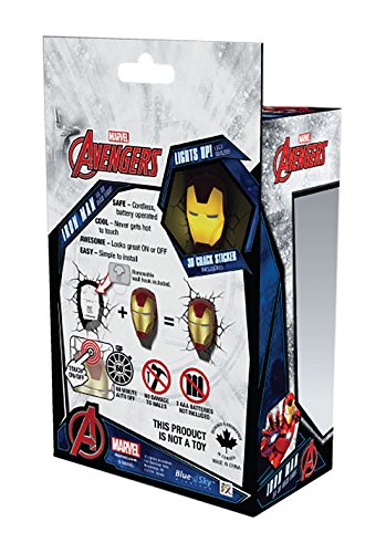 -. Binding : Kitchen -. Brand : Panoware -. Color : Iron Man -. EAN : 0841283199872 -. Feature : Officially licensed / Cordless, 3 AAA batteries required, batteries not included / Crack sticker and removable wall hooks included with no damage to walls / Touch ON/OFF with 60 minute auto shut off timer, LED light never gets hot to touch / Iron Man mask measures 3.25 x 2 x 4.8 inches -. IsAutographed : 0 -. Label : Panoware -. Manufacturer : Panoware -. ProductGroup : Home -. ProductTypeName : HOME -. Publisher : Panoware -. Studio : Panoware -. Title : 3D Light FX Marvel Mini 3D Deco Wall LED Night Light with Crack Wall Sticker, Iron Man -. UPC : 841283199872