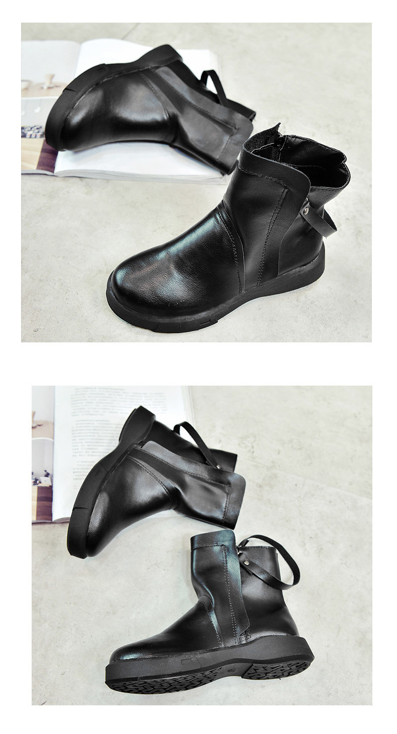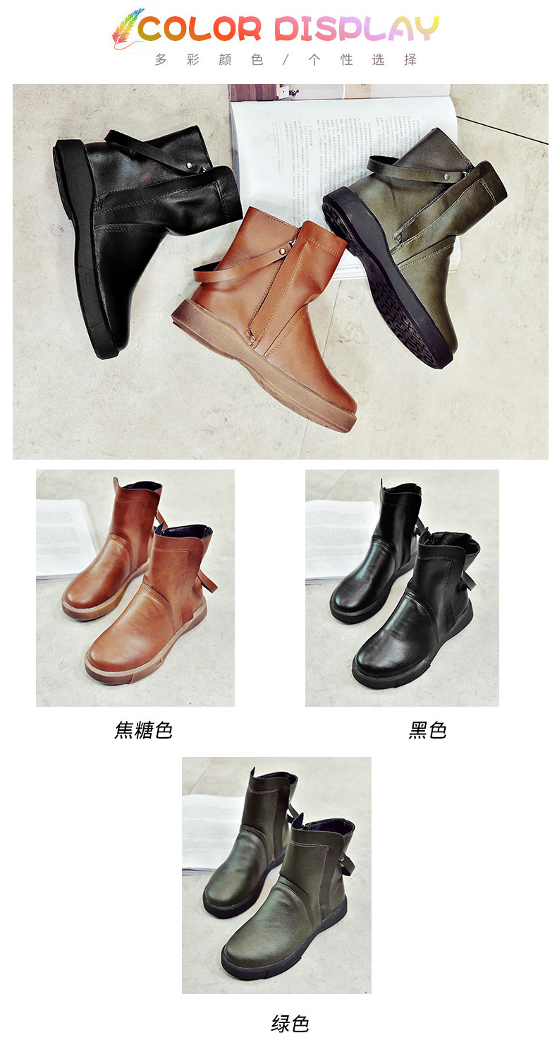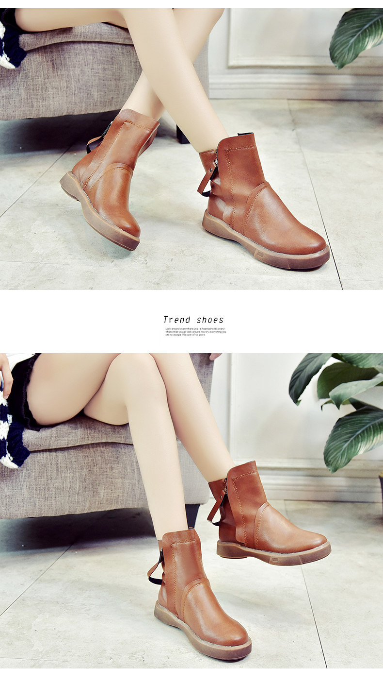 冬季女鞋子新款潮百搭短靴女平底靴英伦风裸靴皮靴学生女靴子