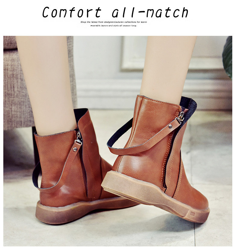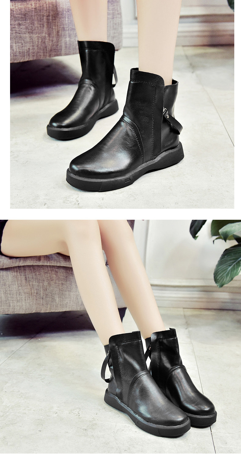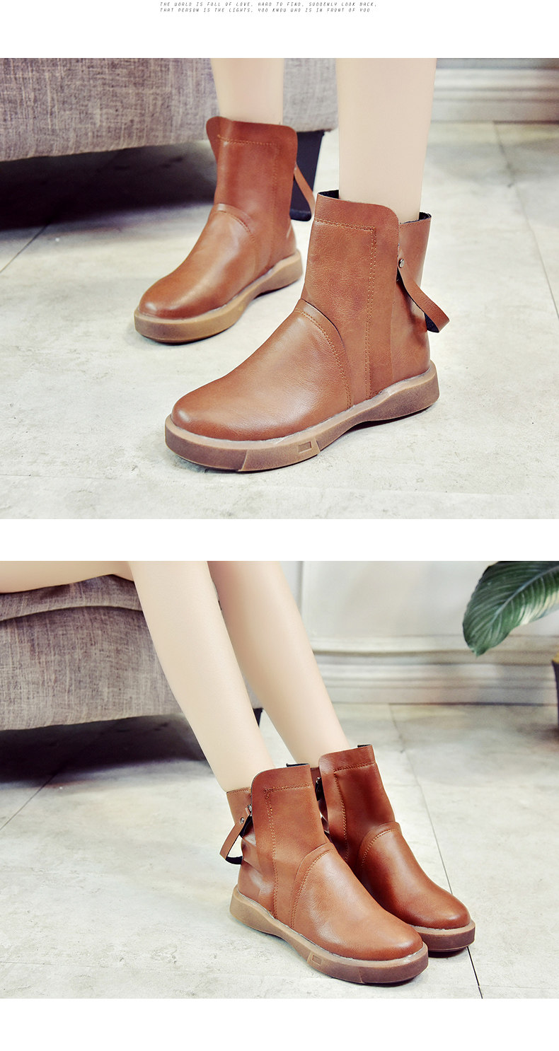冬季女鞋子新款潮百搭短靴女平底靴英伦风裸靴皮靴学生女靴子