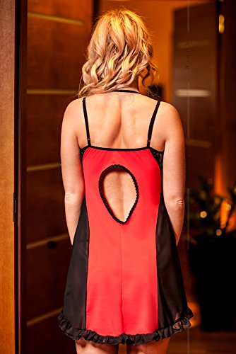 -. Feature : In diesem supersexy schwarz-roten Babydoll sehen Sie umwerfend aus. / Die Vorderseite verfügt über über einen rassigen Fallkragen mit überkreuzten Schleifendetails, während die transparenten Seiteneinsätze aus Mesh und Spitze einen wunderschönen verschlankenden Effekt erzeugen, und bietet jede Menge Stretch. / Weitere Details: Rüschensaum, offener Rückenteil und doppelte Elastik-Riemen. / Erhältlich bis Größe 52/ 6XL, Made In EU, Hohe Qualität / Nine X' wurde bei den diesjährigen British Plus Size Awards von den Verbrauchern als beste Dessous-Marke nominiert,und präsentieren unsere Kollektionen auf verschiedenen Modenschauen