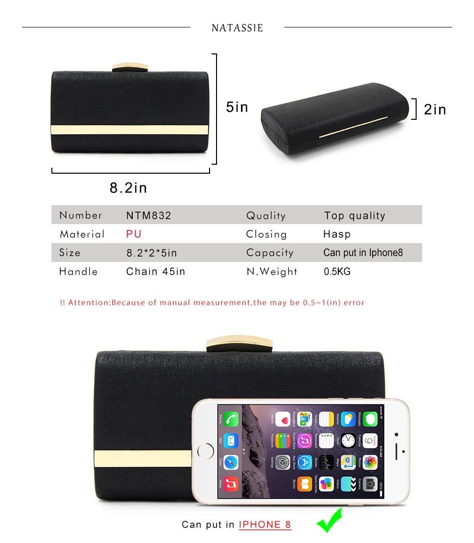 Usage:Clutch evening bag/party bag