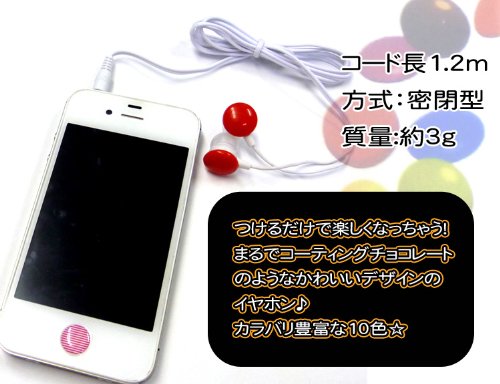 -. Feature : つけるだけで楽しくなっちゃう!まるでコーティングチョコレートの様なかわいいデザインのイヤホン♪ / 質量約3gの軽量タイプ / ステレオミニプラグ3.5mmL型 コード長約1.2m / 本商品はステレオプラグを使用しております。 / 接続され音響機器がモノラルですと片方の音が出ない場合がございます。ご使用になる前に必ずご確認ください。(不良や故障ではありません)