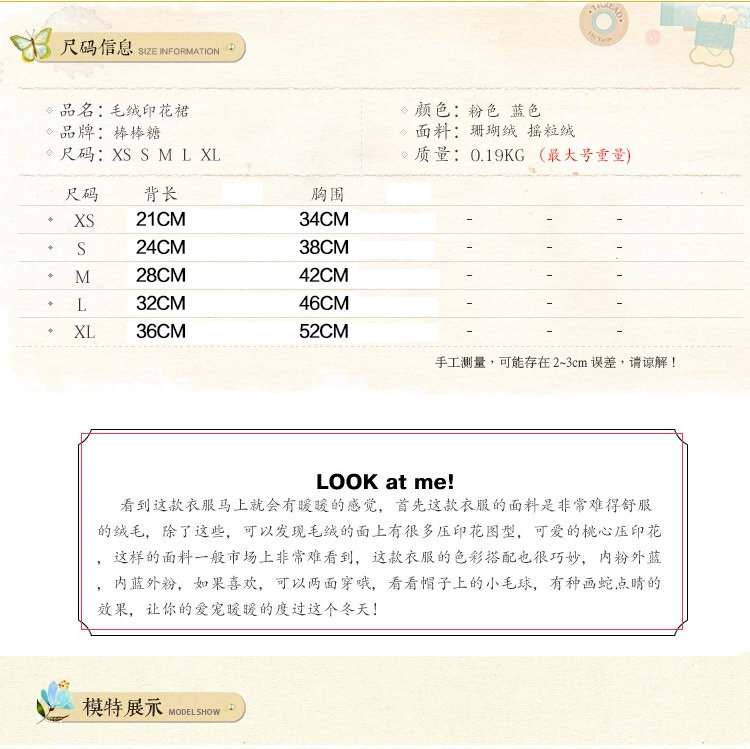 XXL: Bust 52 Back Length 38 Suitable for about 6kg