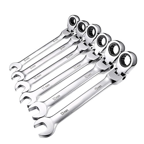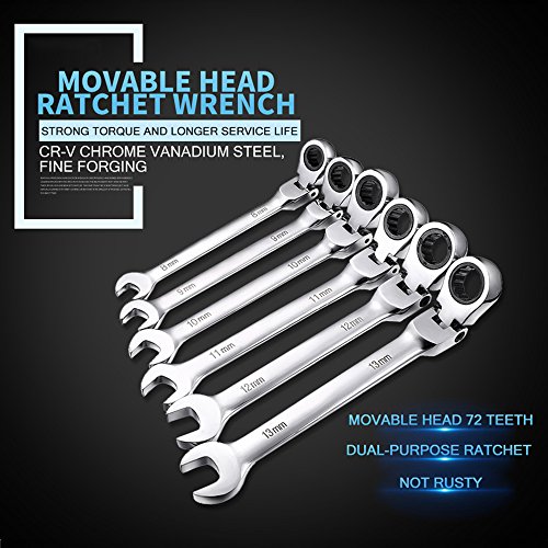 Xilko 6Pcs Metric Ratcheting Combination Wrench Set Handle Spanners Hand Tools 8-13mm