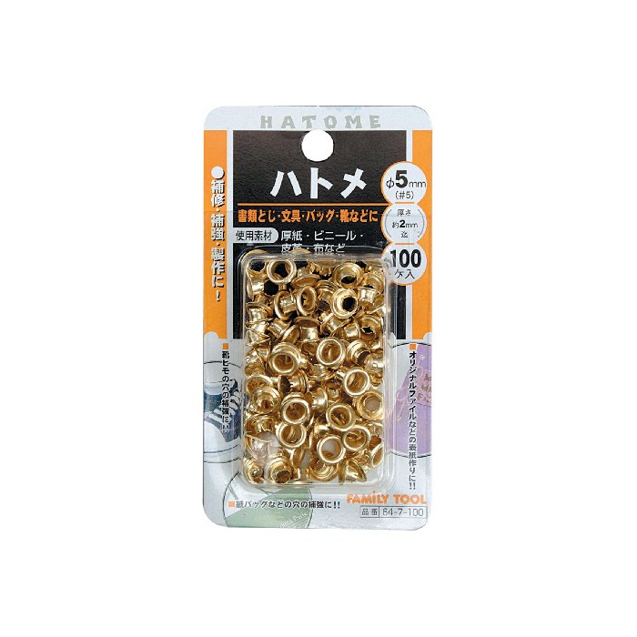 원본상품명: ファミリ?ツ?ル(FAMILY TOOL) ハトメ玉 5mm ?鍮メッキ 100個入 64-7-100