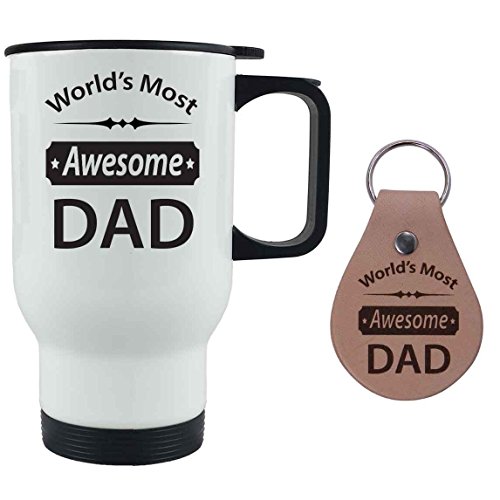 -. Brand : CustomGiftsNow -. Color : White -. IsAdultProduct : 0 -. ProductGroup : Guild Product -. ProductTypeName : GUILD_HOME -. Title : World's Most Awesome Dad 14 oz White Stainless Steel Travel Coffee Mug with Leather Keychain
