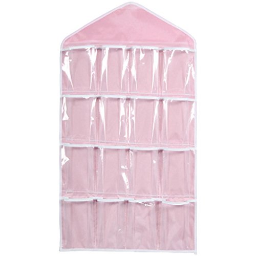 (XUANOU)/Nursery/Furniture/DIRECT FROM USA/XUANOU 16Pockets Hanging Bag With Transparent Window Socks Underwear Rack Storage Bag (Pink)