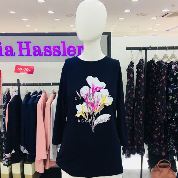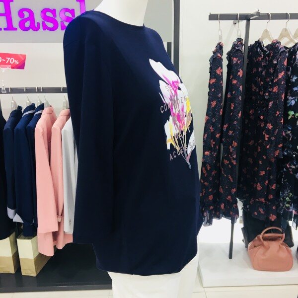화사하고 캐주얼한 프린트가 포인트인 라운드 티셔츠
